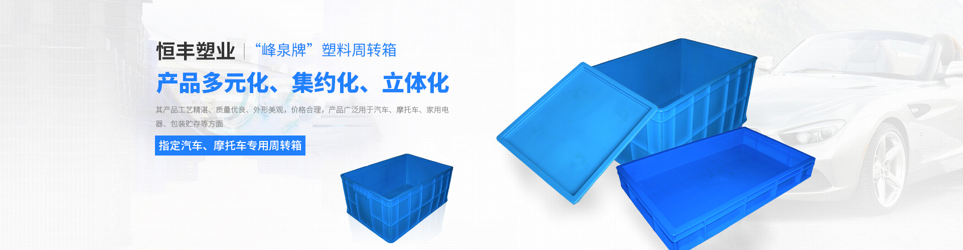 無(wú)錫市恒豐塑業(yè)有限公司是“峰泉牌”塑料周轉(zhuǎn)箱、塑料筐、塑料托盤(pán)、物流箱、標(biāo)簽架等產(chǎn)品專(zhuān)業(yè)生產(chǎn)加工的公司,擁有完整、科學(xué)的質(zhì)量管理體系。無(wú)錫市恒豐塑業(yè)有限公司的誠(chéng)信、實(shí)力和產(chǎn)品質(zhì)量獲得業(yè)界的認(rèn)可。歡迎各界朋友蒞臨參觀(guān)、指導(dǎo)和業(yè)務(wù)洽談。本公司占地面積12000平方米,固定資產(chǎn)壹仟萬(wàn)元,擁有1600克至10000克等注塑設(shè)備,設(shè)備先進(jìn)。年生產(chǎn)能力達(dá)2000噸制品,企業(yè)技術(shù)力量雄厚,專(zhuān)業(yè)工程技術(shù)人員占全廠(chǎng)總?cè)藬?shù)的35%...